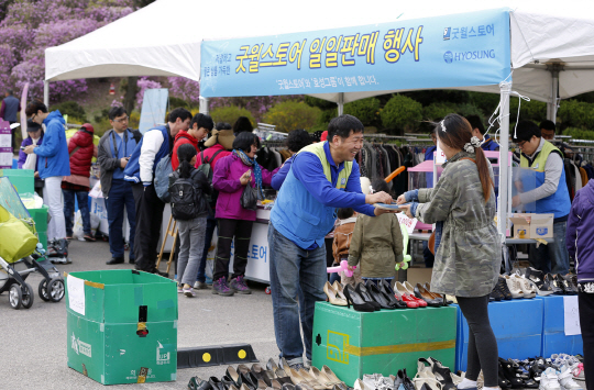 행사는 효성의 사회적기업인 '굿윌스토어'에서 근무하는 장애인 근로자 및 효성 나눔봉사단원들이 직접 나와 기증품을 판매하고, 안양의 지역주민들이 즐길 수 있도록 솜사탕과 팝콘도 함께 팔아 즐거움을 더했다.