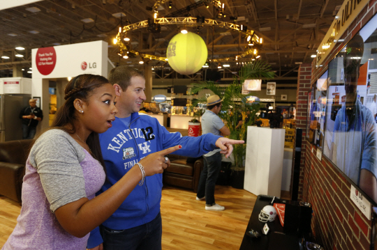 LG전자가 미국 스포츠축제 '2014 NCAA(미국대학스포츠협회) 농구 챔피언십'에서 'LG 울트라HD TV' 화질 우수성을 알렸다. LG전자에 따르면 경기장 인근 팬 축제 행사장 'NCAA 브래킷타운(Bracket Town)'에 울트라HD TV, 곡면 올레드 TV 등 차세대 TV라인업과 세탁기, 냉장고, 청소기 등 생활가전을 전시했다.