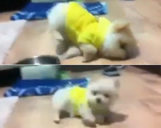 3분 43초 분량의 영상 속에서 강아지는 밥그릇에 담긴 투명한 액체를 먹은 뒤 비틀대고 바닥에 부딪치는 등 이상 현상을 보였다.
