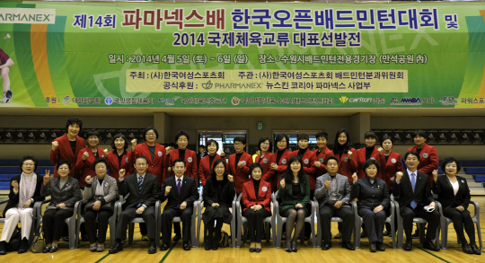 지난 5일부터 6일까지 경기도 수원시 만석공원 배드민턴 전용 경기장에서 열린 '제14회 파마넥스배 한국오픈배드민턴대회'. 한국여성스포츠회가 주최하고, 2001년부터 14년동안 다국적 유통기업 뉴스킨 코리아의 건강기능식품 브랜드 파마넥스가 후원을 해왔다.