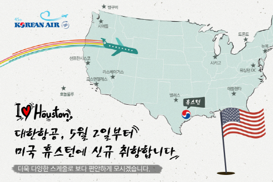 대한항공이 5월 2일 휴스턴 신규 취항을 기념해 휴스턴 항공권 구매 이벤트 및 퀴즈 이벤트를 진행한다.