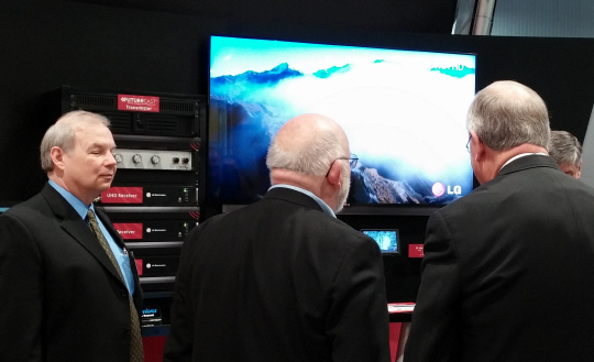 LG전자가 7일(현지시각) 미국 라스베이거스에서 열린 'NAB(National Association of Broadcasters) 2014'에서 차세대 방송 전송기술 시연을 세계 최초로 성공했다.