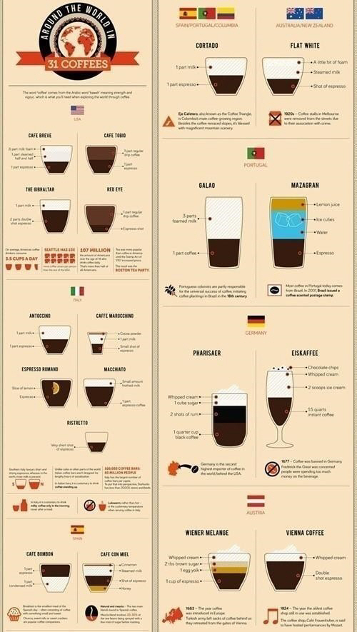 이는 지구상 존재하는 커피 마시는 법을 한 번에 정리해 둔 것으로, 영국의 세계 항공편 정보 사이트 '칩 플라이트(Cheap Flights)'이 이를 정리해 보기 쉽게 그림으로 만들어 공개했다.