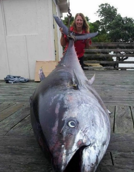 공개된 사진 속에는 대형 참치와 참치를 낚은 오클랜드의 베테랑 여성 낚시꾼 도나 파스코(56)의 모습이 담겼다.