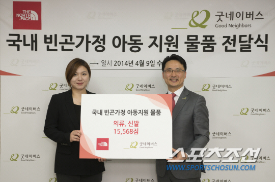 노스페이스는 사회공헌활동의 일환으로 국내 저소득층 및 소외이웃에게 의류와 신발 및 용품 총 1만5568점의 물품을 지원했다. 이 물품은 굿네이버스 국내 54개 지부, 95개 사업장을 통해 전국의 아동보호전문기관, 지역아동센터 및 학대피해아동그룹홈, 종합사회복지관 등에 전달될 예정이다.