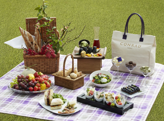 콘래드 서울= 파스티체리아 델리에서는 '체리 블로섬 스프링 피크닉 박스'를 선보였다. 유기농 샐러드와 가츠오부시를 곁들인 메밀국수, 베트남 스프링롤 등으로 구성된 '아시안 피크닉 박스'(2만 1500원)와 토마토, 모차렐라 치즈, 살라미, 건과류 모둠, 파스타 샐러드 등 이탈리아 음식으로 꾸민 '아트리오 피크닉 박스'(2만 6500원) 등이 있다. (02)6137-7120