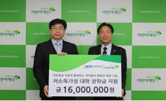 국민연금공단(이사장 최광)은 대학등록금 마련에 어려움을 겪고 있던 저소득층 청소년 7명에게 장학금을 후원하고 10일 추천기관인 '초록우산 어린이재단'에서 전달식을 가졌다.