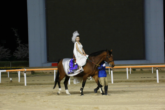 경주마들이 속도를 겨루는 경주로에 15일 단 하루 런웨이가 펼쳐진다. 청마의 해를 기념한 세계최초의 '마상 패션쇼'가 열리는 것. 오후 7시 렛츠런파크 서울에서 모델들이 말에 기승한 채 주로를 런웨이 삼아 색다른 패션쇼를 선보인다. 이날만큼은 경주마가 전력질주하는 결승점에서 승용마에 올라탄 특급 모델들이 우아하게 걷는 모습을 볼 수 있다.