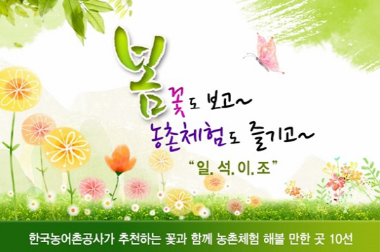 봄꽃 휴양마을 10선에는 딸기 수확과 배꽃이 만들어지는 모습을 체험할 수 있는 양평 가루매마을, 신선한 과일을 맛보고 복사꽃 축제도 즐길 수 있는 강릉 복사꽃마을, 유채꽃 인절미와 유채꽃비누 만들기 체험이 가능한 삼척 맹방유채꽃마을이 선정됐다.