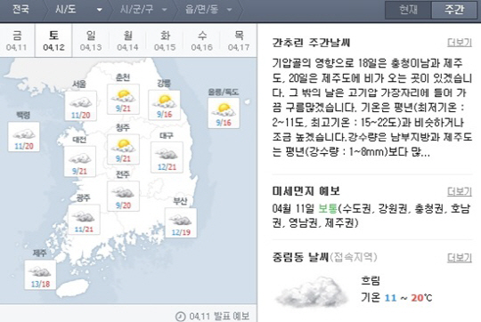 주말 날씨' width='540' /> |