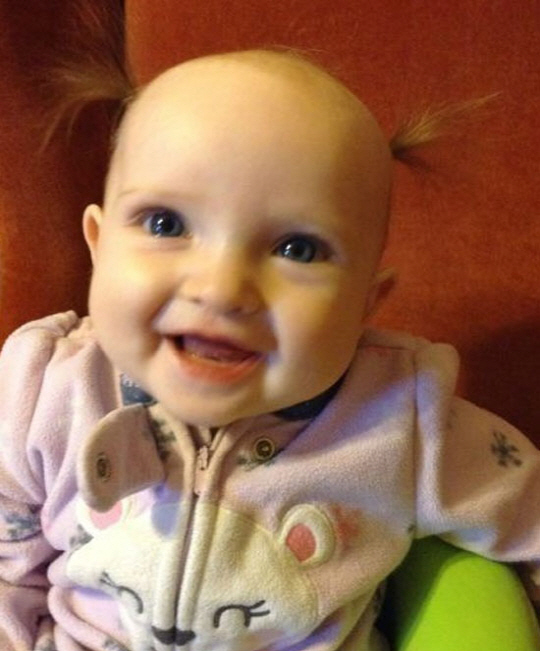 양갈래 머리를 한 아기는 얼마 되지 않는 머리숱으로 묶은 모습이 흐뭇한 엄마미소를 짓게 한다.
