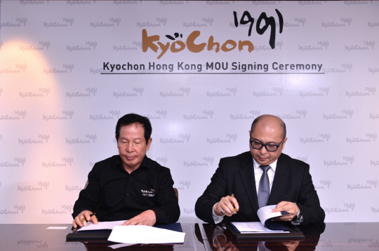 교촌에프앤비는 홍콩 국제상업센터(ICC타워)에서 권원강 회장과 지미웅(Jimmy Wong) GLOBAL LINK 회장 등이 직접 참석한 가운데 MOU 체결식을 진행했다.
