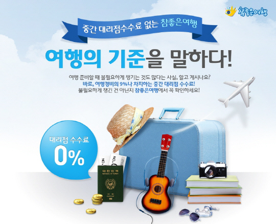 참좋은여행은 네이버 배너광고를 통해 참 좋은 여행을 위해 꼭 필요한 것과 불필요한 것을 비교하는 댓글이벤트 홍보 영상을 공개했다. 여행경비의 9%를 차지하는 중간 대리점 수수료를 불필요하게 챙긴 것은 아닌지 참좋은여행에서 꼭 확인하라는 메세지를 전달하고 있다.