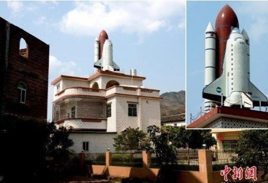 공개된 사진은 중국 광둥성 샤푸 마을에 위치한 한 가정집 옥상 위에 세워진 우주왕복선의 모습이 담겨있다.