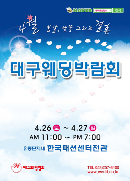 대구웨딩협회가 26일부터 27일까지 대구 한국패션센터에서 상반기 마지막 대형 웨딩박람회를 개최한다.