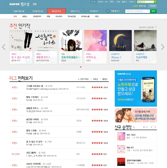 네이버(대표이사 사장 김상헌)는 15일 웹소설 서비스 내에 '베스트 리그' 코너를 신설했다고 밝혔다.