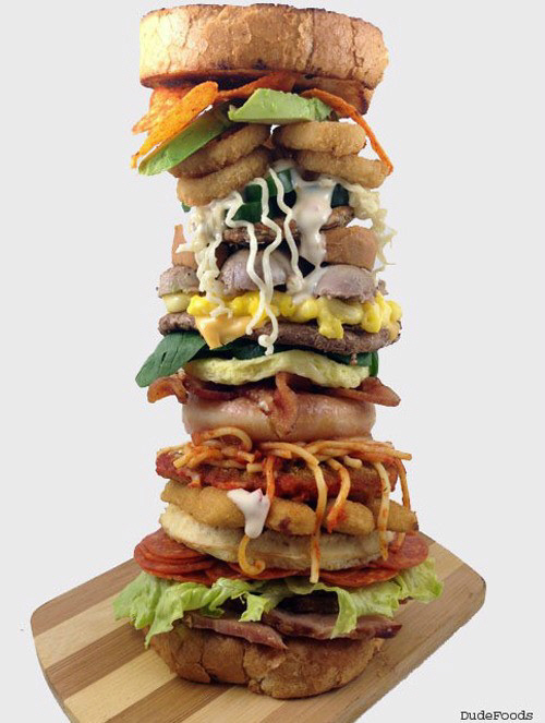 26가지 재료엔 아보카도, 베이컨, 치즈, 도리토스, 계란, 햄, 이탈리란 소시지, 상추, 누들, 어니언 링, 칠면조 고기, 라면, 와플 등이 사용됐다.