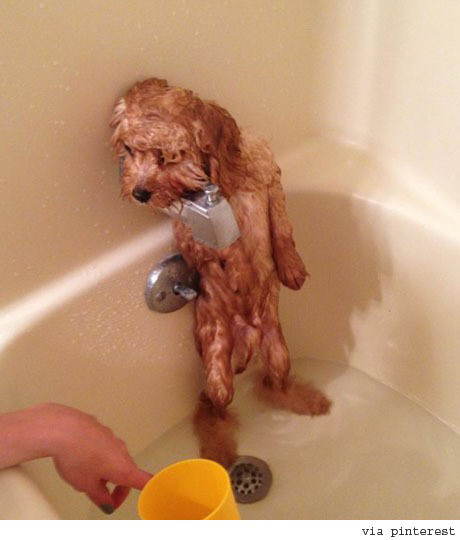 씻기 싫은 강아지 사진이 공개돼 화제다.