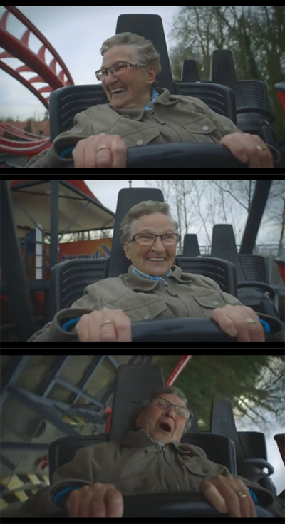 약 1분 길이의 이 영상 속에는 네덜란드의 한 놀이공원을 찾은 네덜란드인 리아 반 덴 브랜드(78) 할머니가 태어나서 처음으로 롤러코스터를 탄 모습이 담겨 있다.