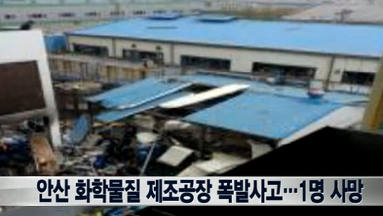 경기도 안산 반월공단 내 화학물질 제조공장 폭발사고로 1명이 숨졌다.