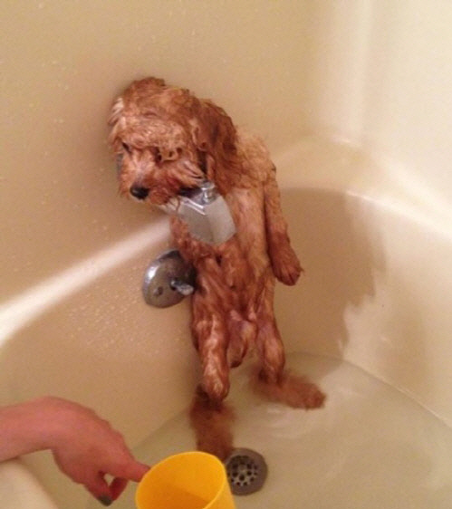 씻기 싫은 강아지' 사진이 네티즌들 사이에서 화제다.