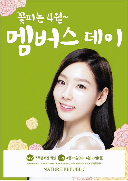 세계 청정 자연에서 찾은 뷰티 에너지를 전하는 네이처리퍼블릭(대표 정운호)은 나들이가 많아진 봄철 유해환경으로부터 피부를 건강하게 가꿀 수 있도록 초록 멤버십 회원을 대상으로 16일부터 제품을 최대 50% 할인 판매하는 '네이처 멤버스데이'를 실시한다고 밝혔다.