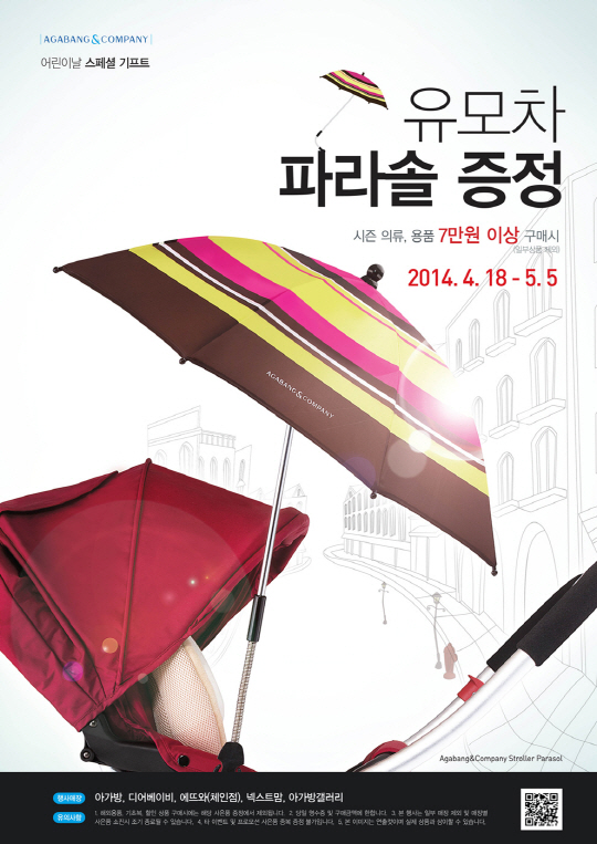 아가방앤컴퍼니 관계자는 "즐겁고 신나는 어린이날을 기원하는 마음으로 이번 이벤트를 마련했다"며 "곧 다가오는 여름 시즌 필수품인 유모차 파라솔로 아이와 함께하는 외출이 보다 안전하고 즐거워지길 바란다"고 말했다.