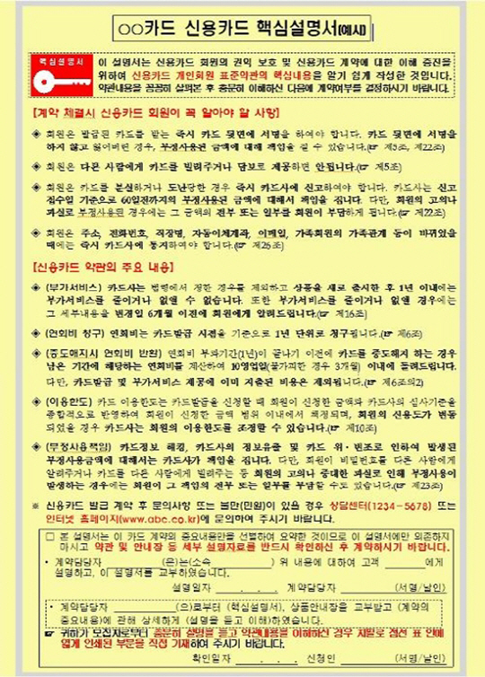 신용카드 핵심설명서, 신용카드 만들 때 이런거 꼭 필요한 것 같아", "