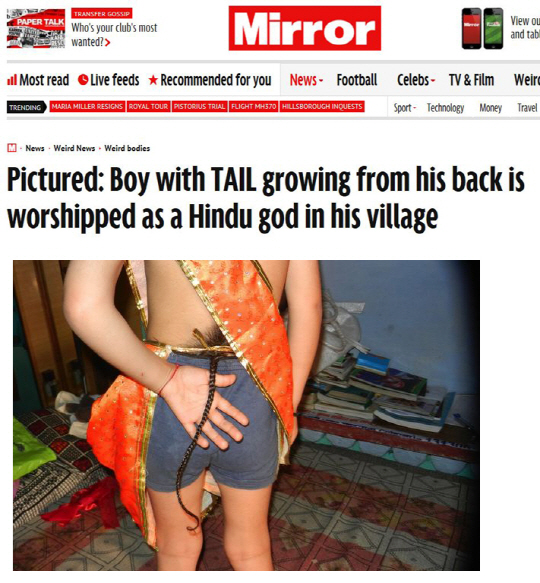 꼬리가 달린 6살 인도 소년이 '살아있는 신'으로 추앙받고 있어 화제다.