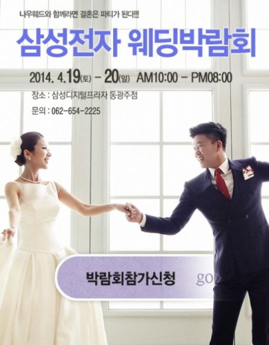 나우웨드는 광주 외에도 서울, 수원, 평택, 대전, 부산, 대구, 포항, 창원, 전주, 제주 등 전국지사를 운영하고 있으며 지난해 머니투데이 소비자만족대상을 수상한 바 있는 웨딩컨설팅 업체로, 참가신청은 홈페이지 (http://www.gjsamsungfair.com )을 통해 가능하다.