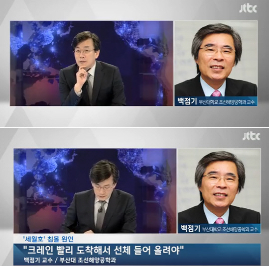부산대학교 조선해양항공학과 백점기 교수와의 인터뷰에서 손석희 앵커는 "배에 공기를 주입하면 그 안에 생존자들이 공기의 덕을 볼만한 공간이 남아 있느냐"고 물었다.