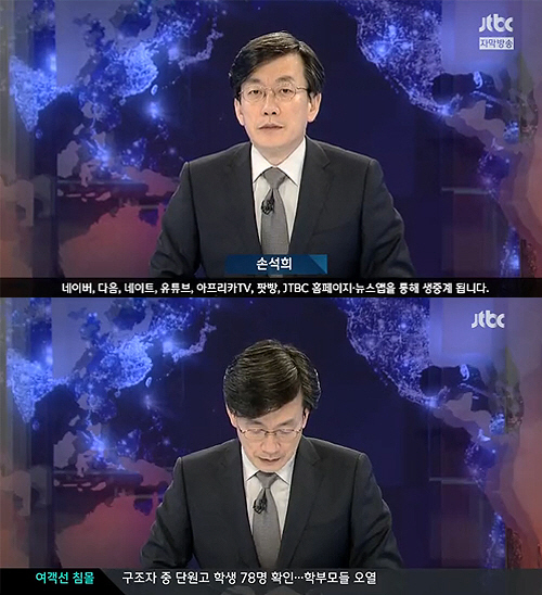 이날 손석희 앵커는 "지난 30년 동안 갖가지 재난 보도를 진행해온 바 있다. 내가 배웠던 것은 재난보도일수록 사실에 기반해서 신중해야 한다는 것과 무엇보다도 희생자와 피해자의 입장에서 사안을 바라봐야 한다는 것이었다"고 말했다.