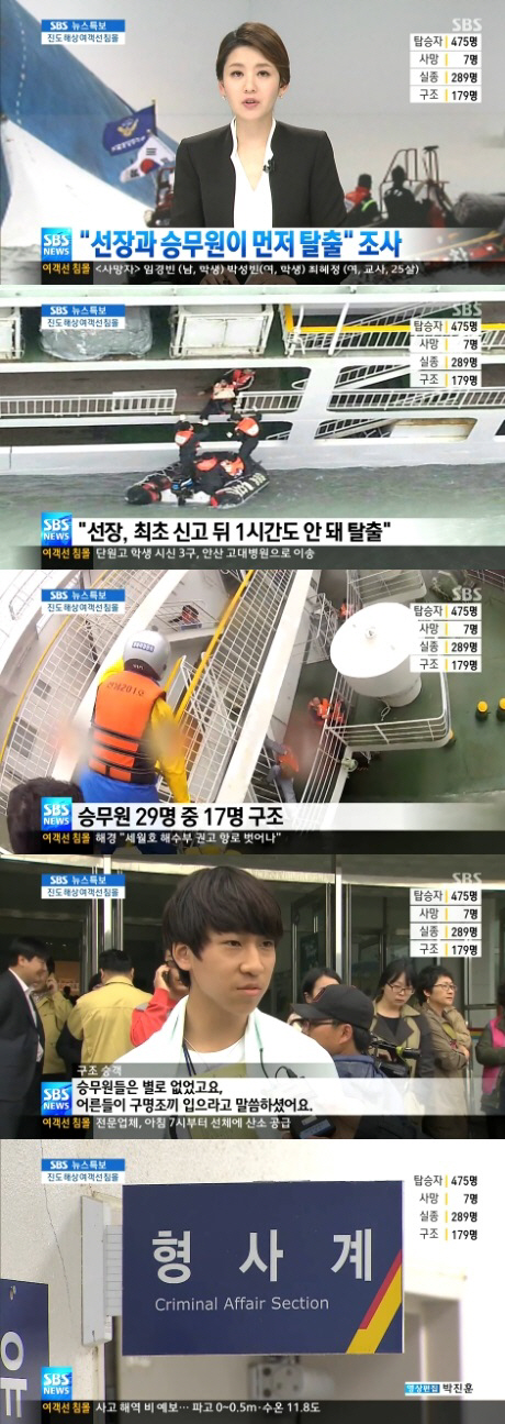 이는 사고 현장에서는 이 씨가 해경에 침수 사실을 신고한 직후 16일 오전 배에서 빠져나왔다는 목격자들의 진술이 잇따르고 있기 때문. 실제로 이 씨는 16일 오전 9시께 다른 승무원들과 함께 해경 경비조에 의해 가장 먼저 구조됐다.