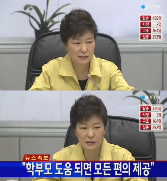 박근혜 대통령이 "바다라서 날씨도 쌀쌀하고 물속은 더 추운 것 아니겠느냐"며 "생존자가 있다면 1분1초가 급하다"고 당부했다.