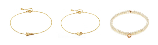 '스프링 에펠'은 아떼의 BI((Brand Identity)인 에펠탑을 모티브로 한 디자인으로 에펠탑의 깔끔한 라인과 함께 옆으로 길게 이어진 쉐입이 팔목을 더욱 얇아 보이게 하는 것이 특징이다. 스프링 하트는 입체감 있는 하트 쉐입의 아이템으로 러블리한 코디가 가능한 아이템이다. 각 5만 9천원. 14K골드&담수 팔찌 라인도 있다. 미니사이즈의 진주가 여성스러움을 더해주는 아이템으로 상큼한 봄을 맞아 더욱 화사한 코디를 할 수 있는 아기자기한 스타일이다. 3만 9천원.