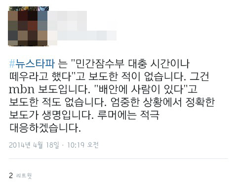 앞서 뉴스타파는 진도 해상에서 발생한 세월호 침몰 사건과 관련해 구조상황을 전달하며 정부의 재난관리 시스템의 문제점을 지적했다. 또한 이날 MBN는 민간 잠수부 홍가혜씨의 인터뷰를 통해 "현장 정부 관계자가 대충 시간이나 떼우고 가라고 말했다"며 "민간 잠수부들과 관계자의 협조가 전혀 이루어 지지 않는 상황이며 장비 지원이 거의 제대로 되지 않아 수색 진행이 어렵다"고 보도해 혼선을 빚어내고 있다.