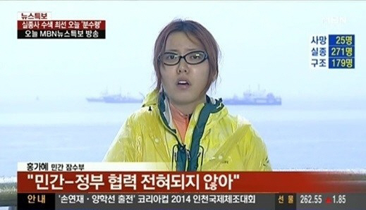 앞서 MBN은 이날 오전 뉴스를 통해 민간 잠수부 홍가혜 씨와의 인터뷰를 공개했다. 인터뷰에서 홍가혜 씨는 "언론에 보도됐던 것처럼 장비나 인력이 전혀 지원이 되고 있지 않다. SNS를 통해 전해지고 있는 상황이 거짓과 진실이 섞여있다"며 "민간 잠수부들이 배 하나를 두고 사람 소리도 들었고 대화도 시도했다는 것은 똑같이 확인했다"고 전했다. 또한 민간 잠수부 중 테크니컬 자격증을 딴 능력있는 분들도 수색 작업을 못 하게 해서 기다리고만 있는 상황이라며 굉장히 격분한 감정을 호소했다.