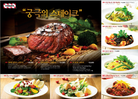 이번 TGI프라이데이스 신 제품 개발에는 스테이크의 두께를 기존 대비 약 2배로 높여 스테이크의 식감을 강조했다. 호주산 와규 스테이크 '와규 트라이팁', 국내산 등심 스테이크 '페퍼콘 립아이 스테이크', 와규와 등심 스테이크 두 가지를 한번에 즐길 수 있는 투포 올 스테이크를 출시했다.
