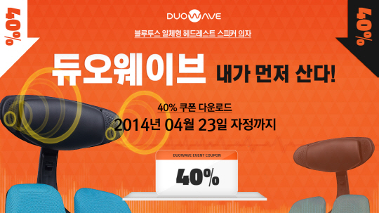 디비케이는 23일 자정까지 디비케이 공식 온라인스토어(www.duoback.co.kr)를 통해 듀오웨이브 40% 할인 쿠폰을 배포한다. 디비케이의 온라인 회원이라면 누구나 쿠폰을 다운로드할 수 있으며 해당 쿠폰은 듀오웨이브 전 제품 구매 시 사용 가능하다.(ID당 쿠폰 1장 발행) 쿠폰 유효 기간은 23일부터 30일까지 총 8일간이며 사용기한이 만료된 쿠폰은 자동 소멸된다.