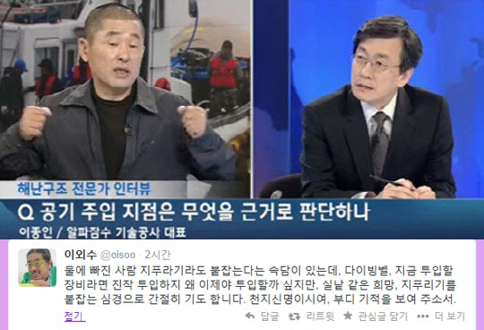 이외수, 이종인 대표의 다이빙벨 투입 소식에 "지푸라기를 붙잡는 심경"