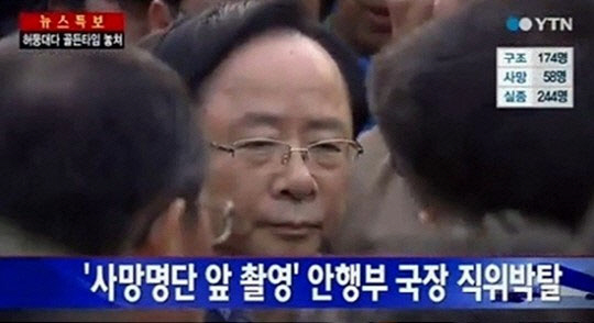 앞서 송영철 국장은 이날 오후 6시 팽목항 상황본부의 세월호 침몰 사망자 명단 앞에서 동행한 공무원과 기념사진을 찍으려다가 가족들의 거센 항의를 받았다.
