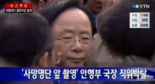 앞서 송영철 안행부 국장은 20일 진도 팽목항 상황본부의 세월호 침몰 사망자 명단 앞에서 기념 사진을 찍으려다 실종자 가족들에게 거센 항의를 받은 바 있다.