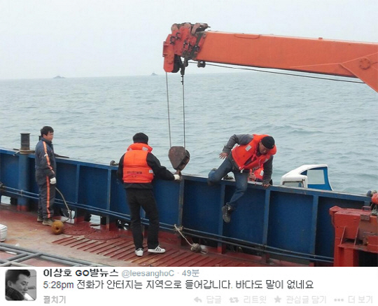 이날 이상호 기자는 다이빙벨의 구조현장 투입 과정을 SNS을 통해 실시간으로 알리고 있다. 현재(오후 5시 28분 트위터 글 이후)새 소식은 올라오지 않았다.