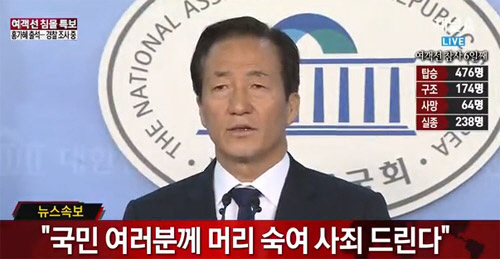 아들의 발언이 파장을 일으키자 결국 정 의원은 자신의 트위터에 "유가족과 실종자 가족 여러분, 그리고 국민 여러분께 머리 숙여 깊이 사죄드립니다. 제 막내아들의 철없는 짓에 아버지로서 죄송하기 그지 없습니다"라며 "저희 아이도 반성하고 근신하고 있지만 이 모든 것이 아이를 제대로 가르치지 못한 저의 불찰입니다. 이번 일로 마음의 상처를 입으신 유가족과 실종자 가족, 그리고 국민 여러분께 다시 한 번 진심으로 사죄 드립니다"고 사과문을 올린 뒤, 국회에서 기자회견을 열고 재차 사죄의 뜻을 전했다.