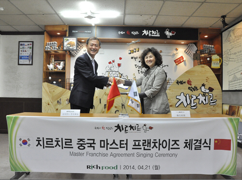 퓨전다이닝 대표기업 리치푸드(주)가 운영하는 퓨전치킨팩토리 '치르치르(대표 여영주, http://www.chirchir.net)'는 대만외식기업인 베니유한공사㈜, 지정구대표와 '마스터 프랜차이즈'방식으로 계약을 맺고 대만에 진출한다. 또한 중국 천진에도 녹색정원 원춘추대표와 동일한 계약으로 진출한다고 21일 밝혔다.