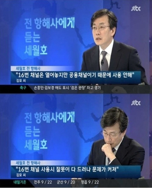 세월호 전 항해사 인터뷰, 채널 사용 문제 결국 문제가 있었다는 해석", "