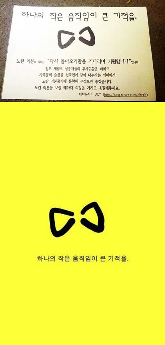 많은 네티즌들은 "노란리본 캠페인, 당장 카톡 프로필을 바꿔야겠다", "노란리본 캠페인, 정말로 기적을 만들었으면 좋겠다", "노란리본 캠페인, 끝까지 희망을 놓지 말아요", "노란리본 캠페인, 이런 게 도움이 된다면 얼마든지 하고 싶다", "노란리본 캠페인, 간절하게 기도하면 꼭 이루어질 거다"등의 반응을 보였다. <스포츠조선닷컴>