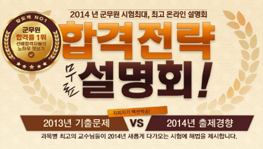 합격전략설명회는 2013년 군무원 기출유형 분석 및 올해 군무원 시험과목별 출제유형 예측을 공개하고, 과목별 전문 교수진에게 듣는 남은 기간 공부전략법을 듣게 된다. 그리고 면접특강과 함께 군무원 전문가와의 1:1 개별맞춤 상담 및 수험자료 요청도 가능하다.