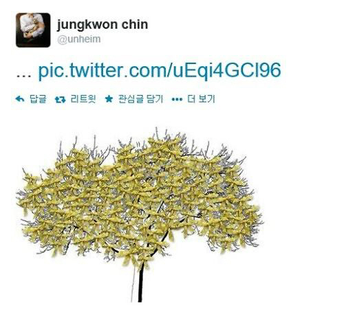 진중권은 22일 자신의 트위터 계정을 통해 노란리본이 달린 나무 사진을 게재했다. 이는
