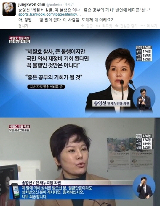 진중권, 송영선 사과 탄식... 송영선 참사 공부 발언은 진짜 아닌 듯", "